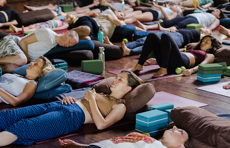 The schedule, especially on an intensive course, can be demanding. They’ll be asana practice, thought-provoking lectures and in-depth workshops on philosophy, pranayama, teaching, meditation, Kirtan and anatomy – lots of sitting and talking. You start to learn about not only what your body can do, but also what your mind can do… and this is where the lessons really begin. Be prepared to be confronted as you sit in long hold poses (pigeon!) desperately trying to calm your mind; expect things you may have locked away to arise; experience frustrations and watch how you react; learn lessons about yourself that may make you question your values and life as you know it. It will unravel every part of your life – from your relationship with yourself, your work, to what you eat, your community. Be prepared to take a long old look in the mirror.