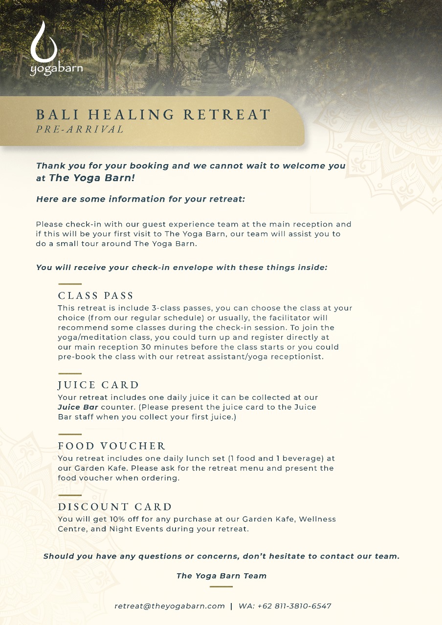 - Special discounts on Wellness Sessions and Garden Kafe during retreat period
